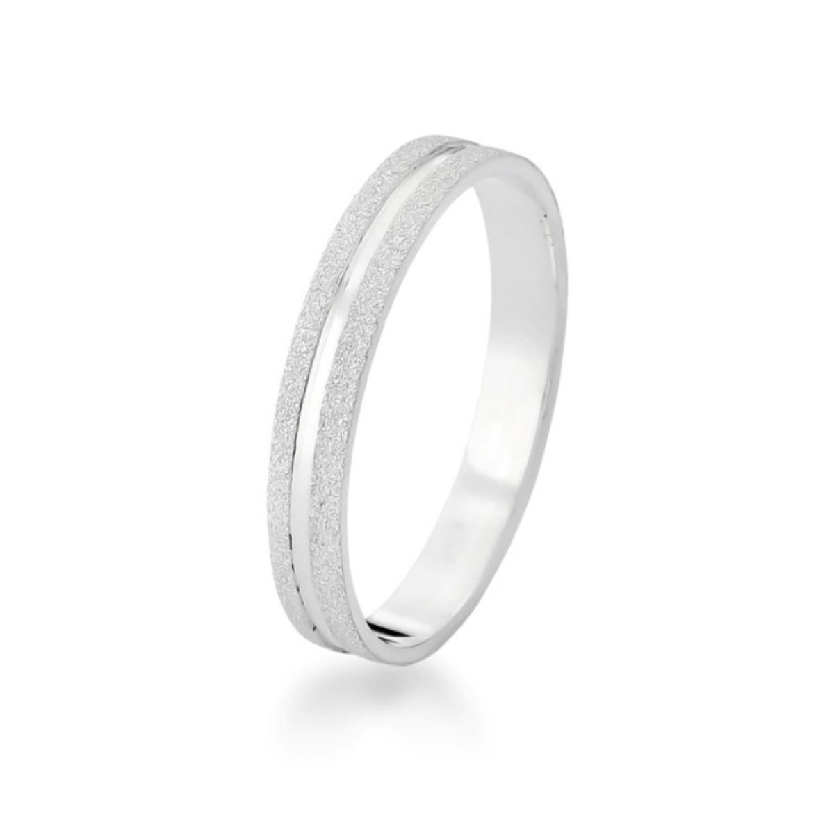 Aliança de compromisso em Prata 925 legítima, com 3,5mm de largura, acabamento diamantado que reflete a luz em vários ângulos e detalhe em friso central, trazendo um toque moderno e sofisticado à peça. O modelo é unitário, perfeito para representar compromisso, amor e união com muito estilo.