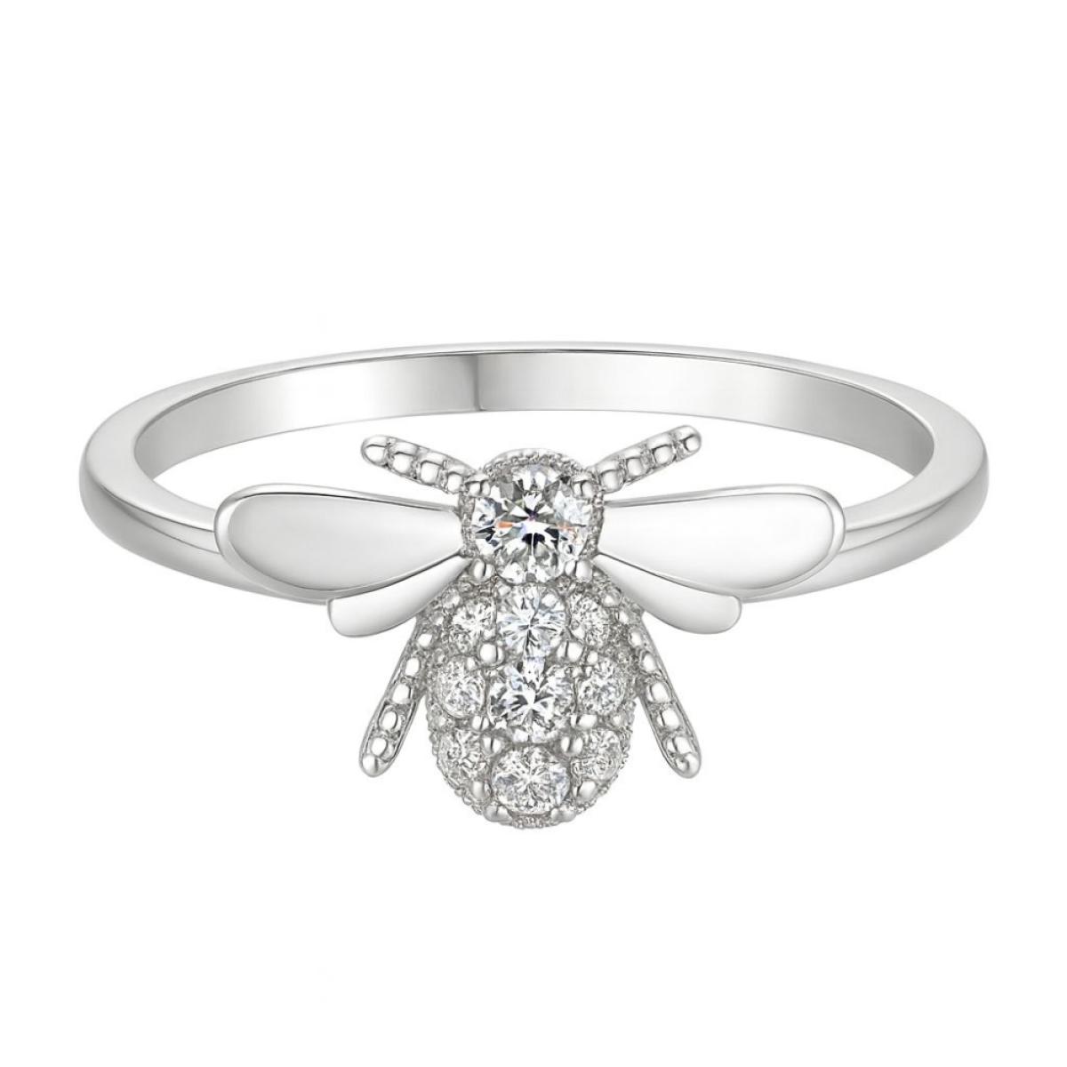 Anel em Prata 925 legítima, com design exclusivo em formato de abelha, símbolo de trabalho, dedicação e prosperidade. O corpo e as asas da abelha são cravejados com zircônias brilhantes, que garantem um efeito luminoso e sofisticado. Uma joia delicada e moderna, perfeita para quem gosta de acessórios com significado e estilo único.
