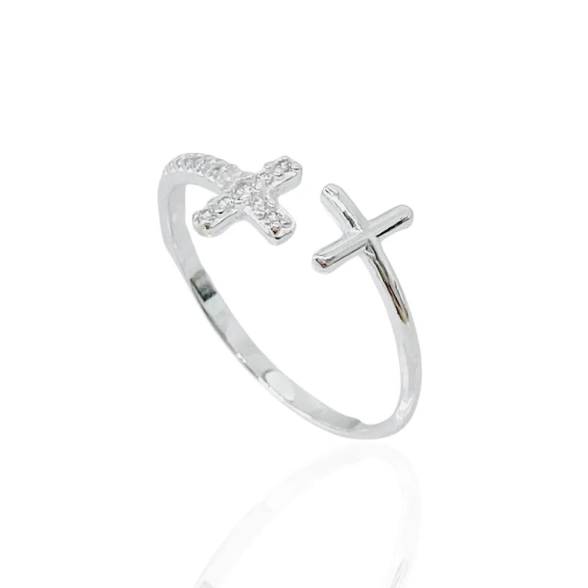 Modelo: Anel Regulável Cruz Lisa e Cravejada em Prata