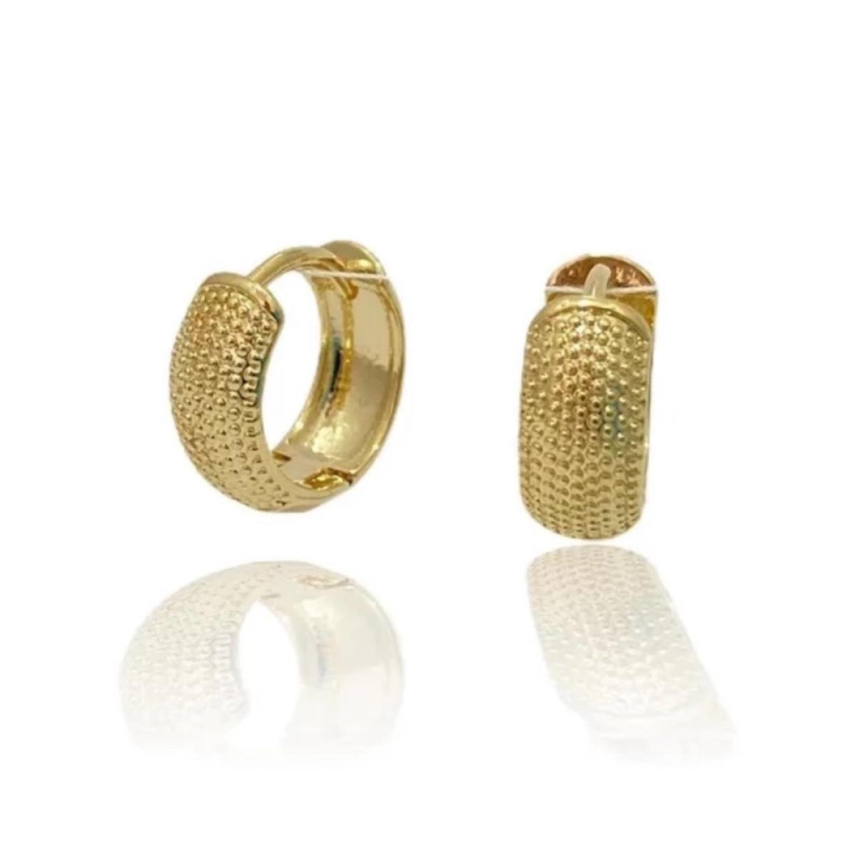 Argola folheada a ouro 18k, com design diferenciado em formato pipocado/texturizado, que traz modernidade e brilho especial à peça. Seu acabamento elegante garante sofisticação, tornando a joia perfeita para compor looks versáteis — do casual ao mais refinado. Uma peça atemporal e cheia de personalidade, ideal para quem busca estilo e delicadeza no mesmo acessório.
