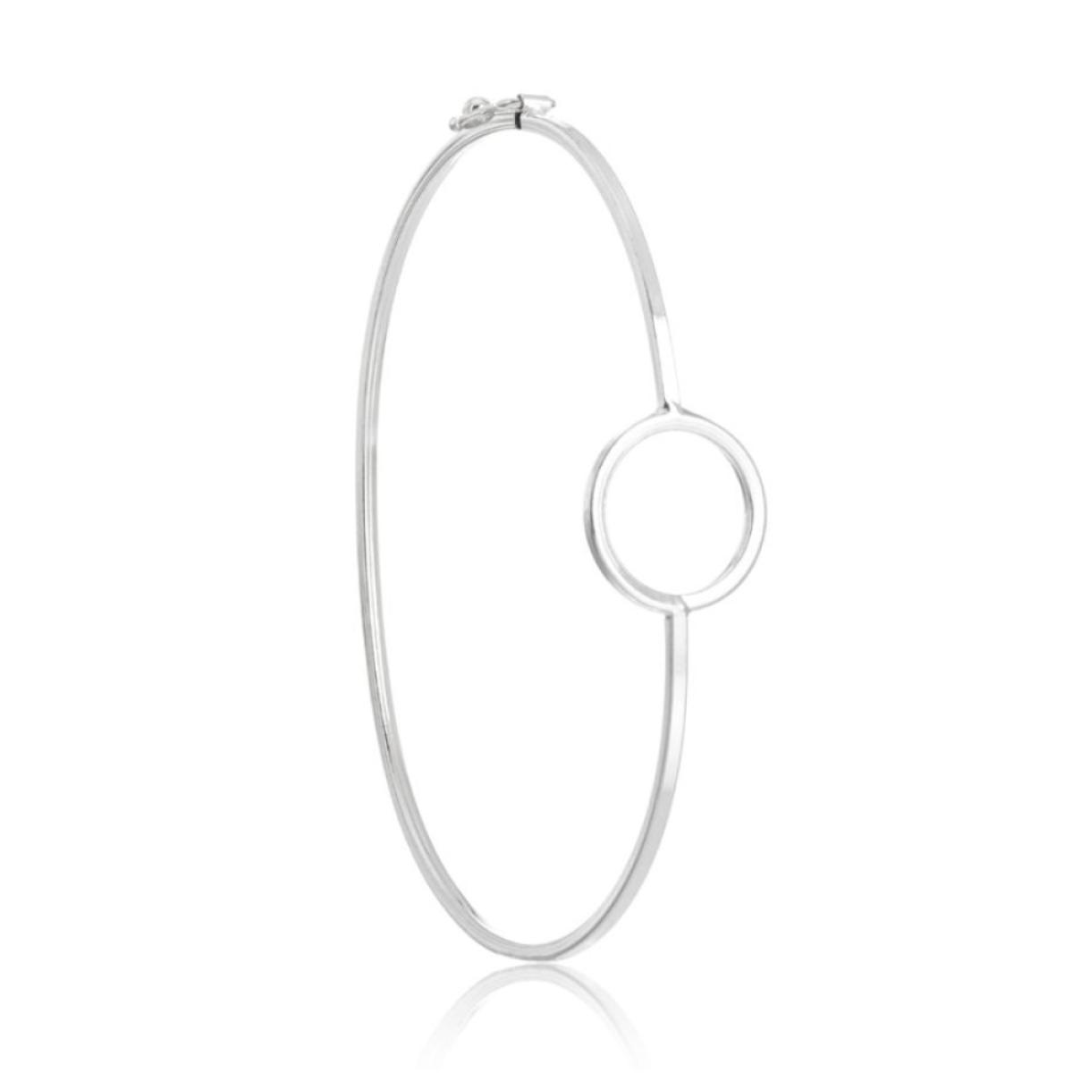 Bracelete em Prata 925 legítima, com design oval liso e detalhe central em círculo vazado, que traz modernidade e sofisticação à peça. O modelo conta com fecho de trava, garantindo segurança, praticidade e firmeza no uso. Uma joia elegante e versátil, perfeita para ser usada sozinha como destaque ou em composições com outros acessórios, criando visuais cheios de estilo.