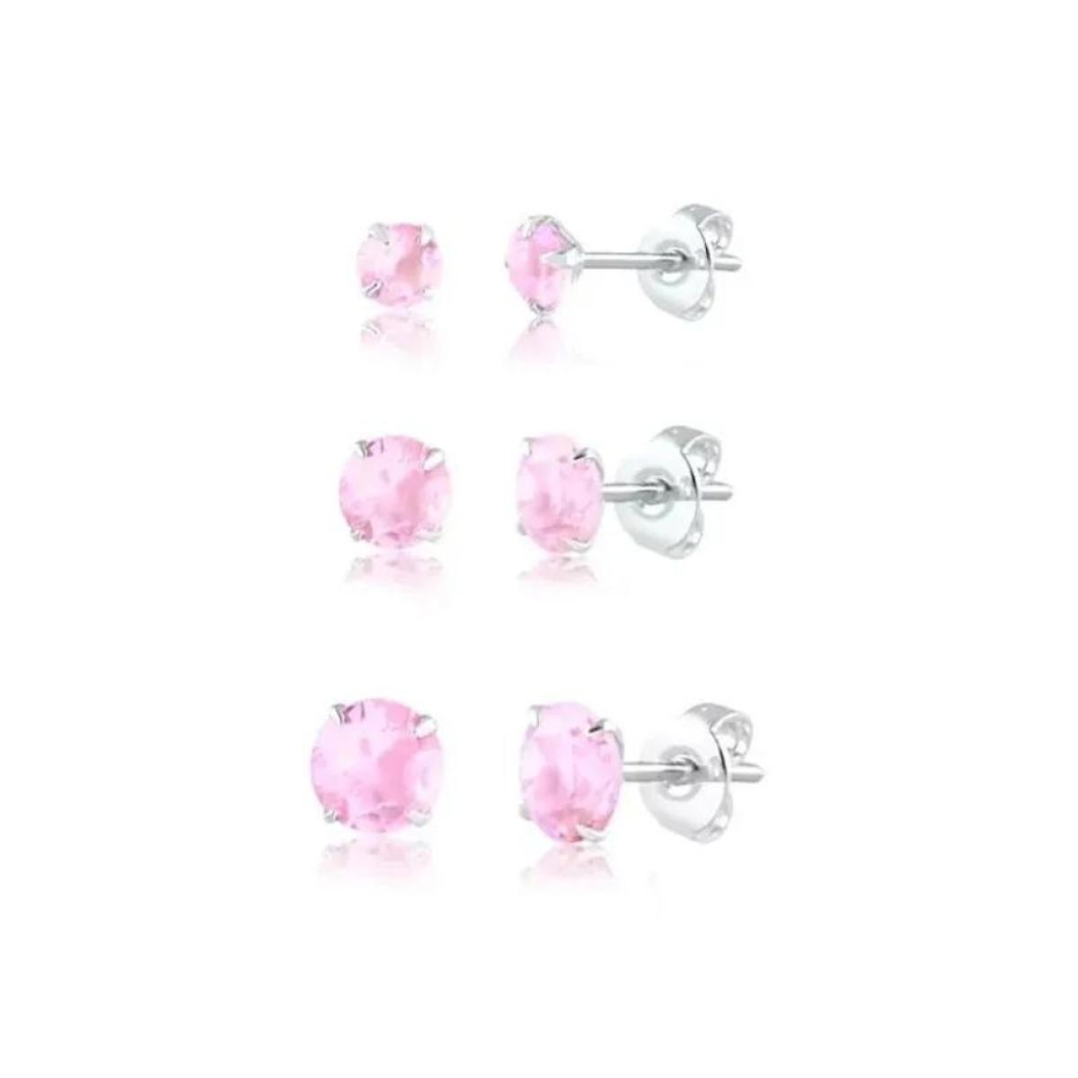 Trio de brincos em Prata 925 legítima, no estilo clássico ponto de luz redondo, com zircônias na cor rosa que refletem brilho delicado e sofisticado. O conjunto é composto por três tamanhos diferentes, permitindo versatilidade no uso — ideal para quem tem múltiplos furos ou deseja variar o look no dia a dia. Uma joia romântica, charmosa e atemporal.