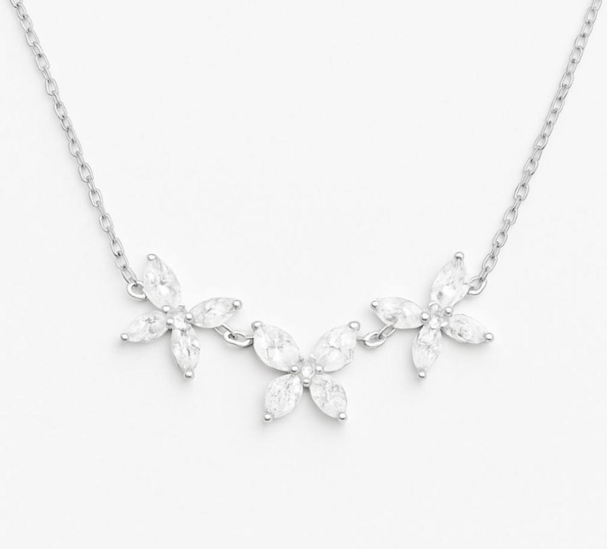 Colar em Prata 925 legítima, com corrente delicada e pingentes de borboletas cravejadas com zircônias cristal, que refletem brilho intenso e trazem delicadeza à peça. O design simboliza liberdade, transformação e feminilidade, tornando essa joia perfeita para compor looks leves, românticos e cheios de estilo.