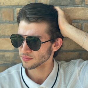 Estilo e originalidade em um só acessório. O Óculos de Sol Hexagonal com Aro Preto combina design moderno e traços marcantes, ideal para quem gosta de se destacar com elegância.