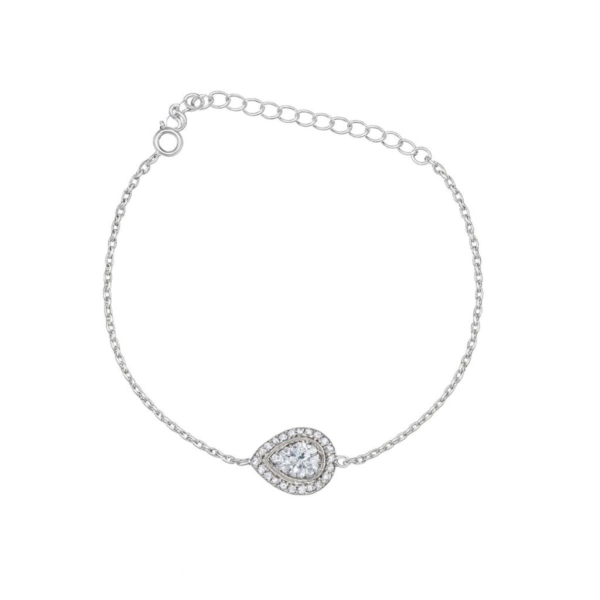 Pulseira em Prata 925 legítima, com corrente delicada e pingente em formato de gota, trazendo uma zircônia cristal central em corte sofisticado, rodeada por micro zircônias cravejadas que intensificam o brilho da peça. O design clássico e elegante faz desta joia uma escolha atemporal, perfeita para ocasiões especiais ou para dar um toque refinado ao uso diário.
