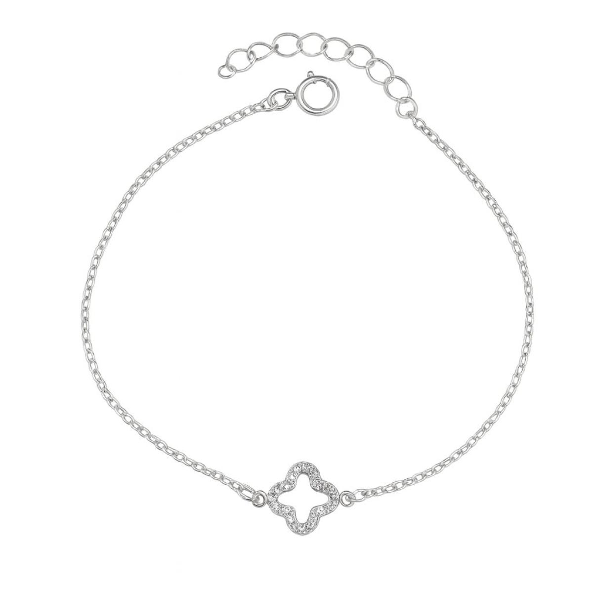 Pulseira Trevo Vazado Cravejada Mini em Prata 925
