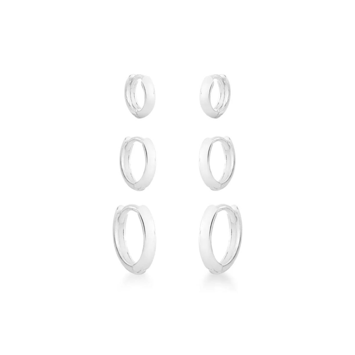 Práticos e elegantes, estes três pares de argolas lisas com fecho click oferecem versatilidade e estilo para o dia a dia. Produzidos em Prata 925 legítima com garantia vitalícia.