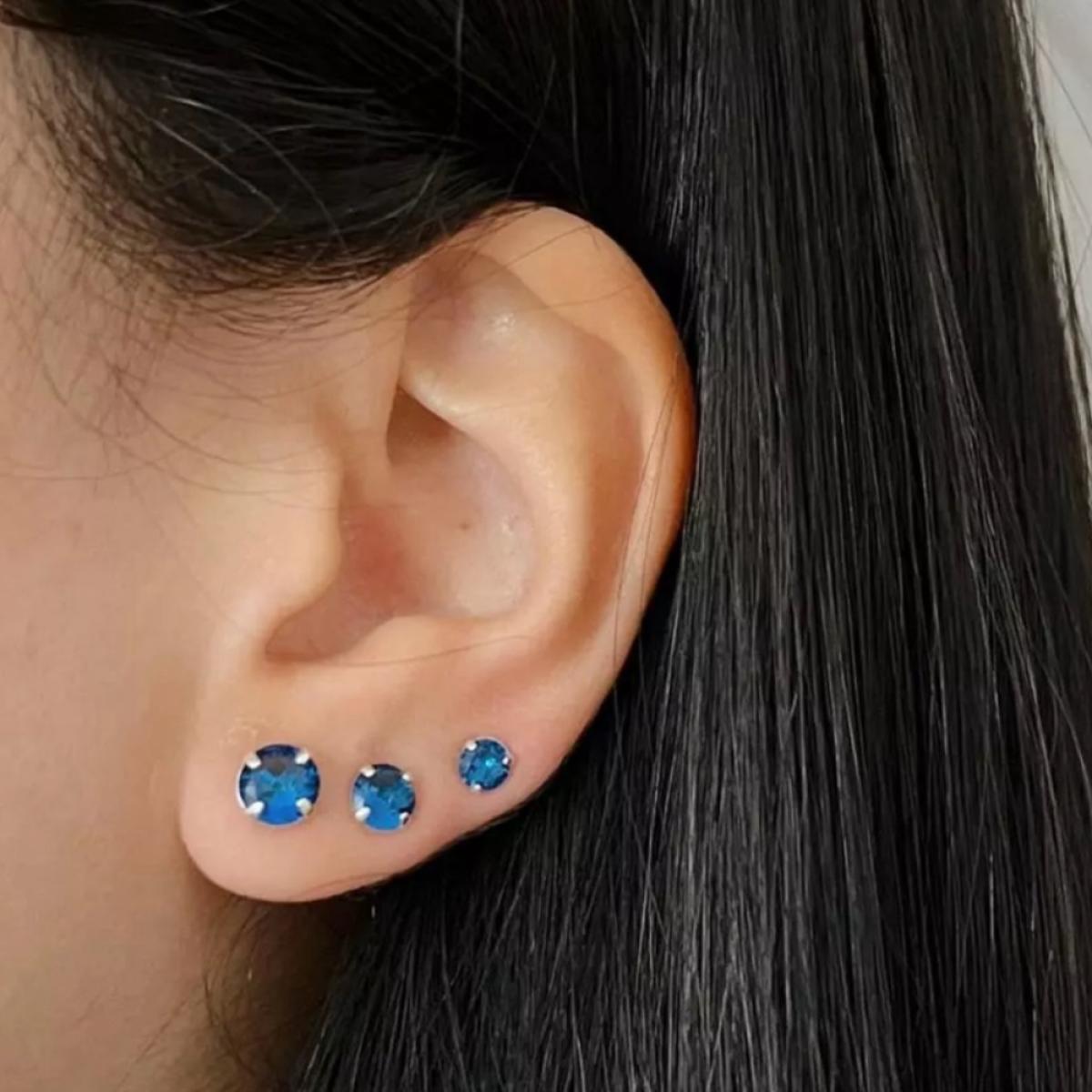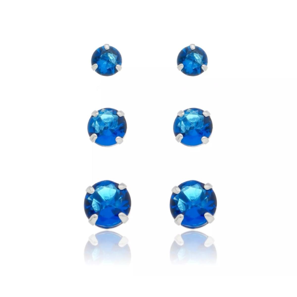 Modelo: Trio de Brincos Ponto de Luz Redondo Azul Escuro