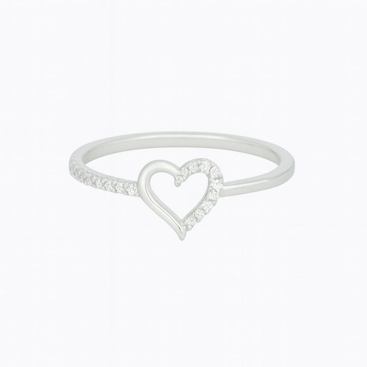 Anel em Prata 925 legítima, com design delicado em formato de coração, sendo metade liso e metade cravejado com zircônias cristal, criando um contraste moderno e sofisticado. A peça simboliza amor e delicadeza, unindo brilho e minimalismo em uma joia atemporal, perfeita para o dia a dia ou ocasiões especiais.