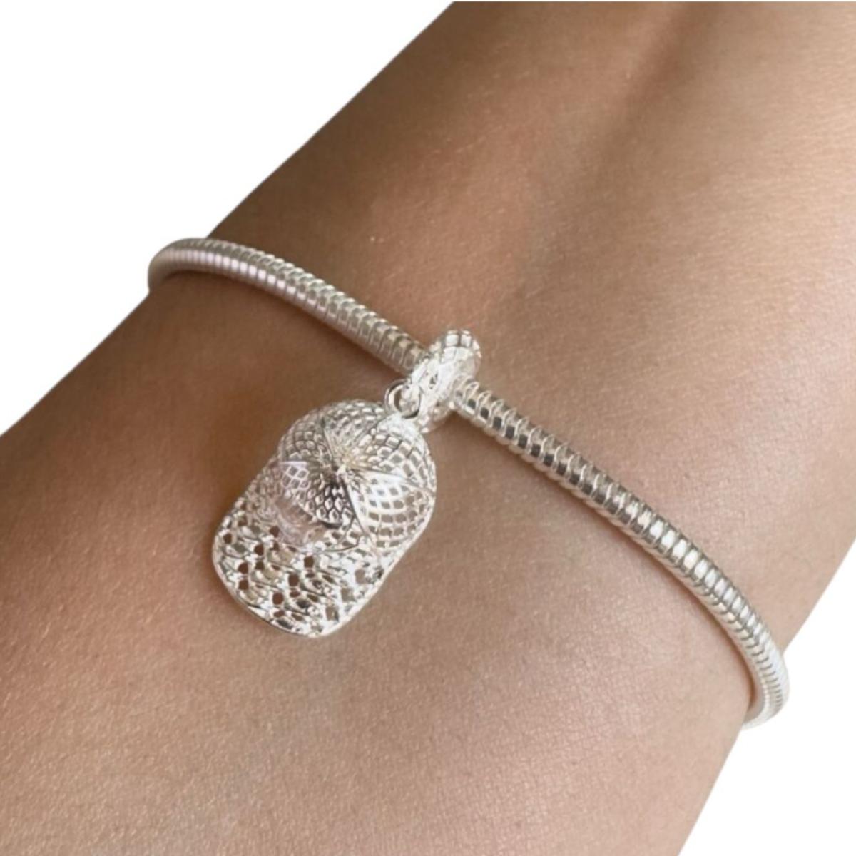 Berloque em Prata 925 legítima, com design criativo de boné estilo esportivo, inspirado no lifestyle urbano e moderno. Uma peça cheia de personalidade, ideal para quem ama moda casual, esporte e acessórios diferenciados. Perfeito para personalizar pulseiras, representando estilo, atitude e autenticidade no dia a dia.