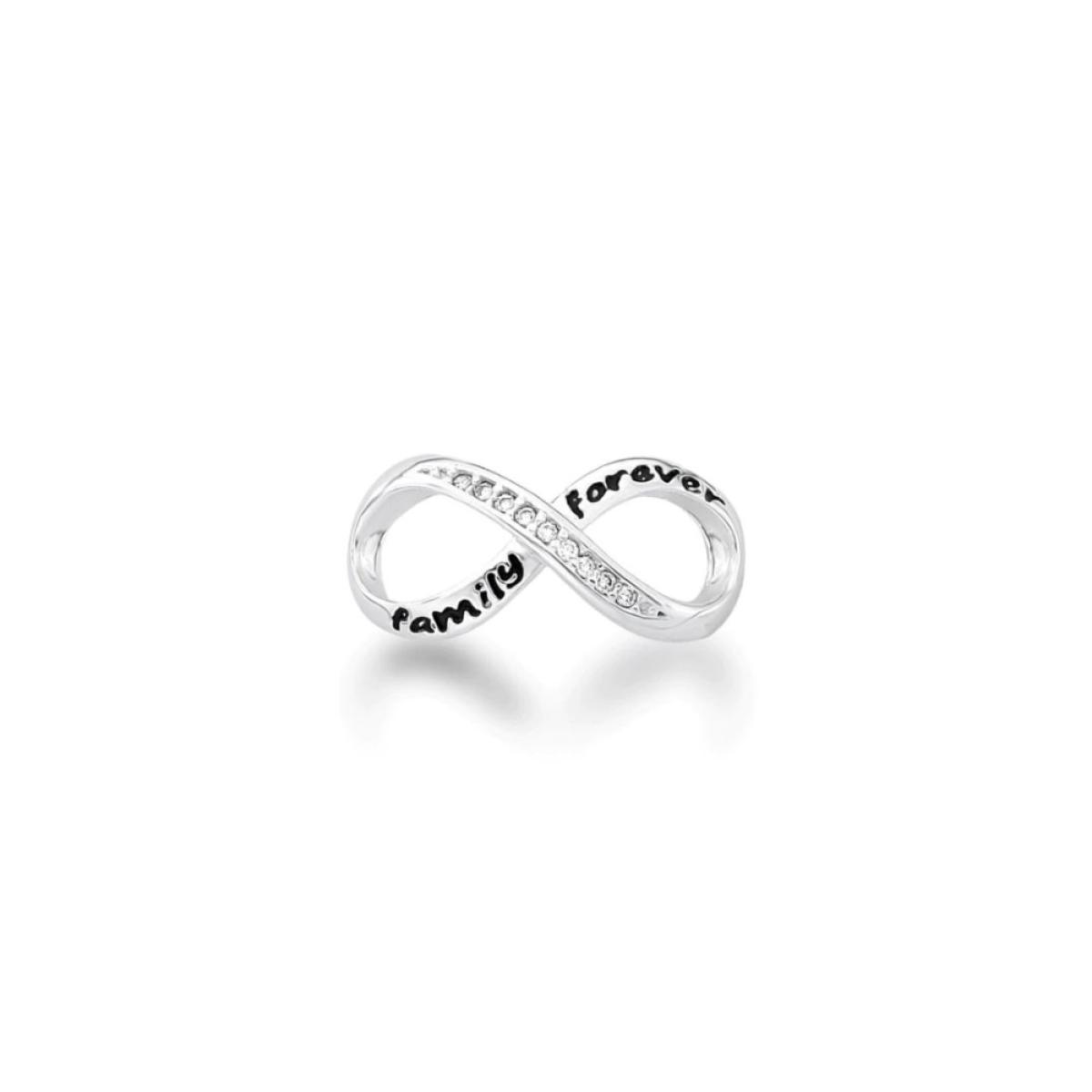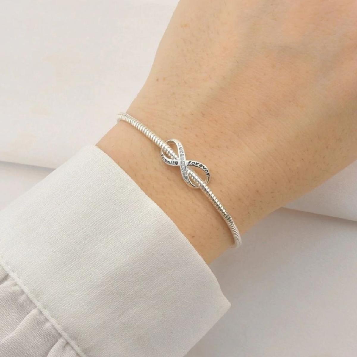 Berloque separador em Prata 925 legítima, com design do símbolo do infinito cravejado em zircônias, representando eternidade, amor infinito e conexões que nunca se quebram. Uma joia elegante e sofisticada, ideal para organizar berloques na pulseira e, ao mesmo tempo, acrescentar brilho e significado ao visual.