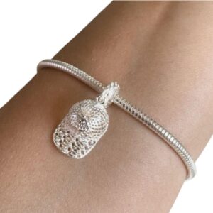 Todos os berloques em Prata 925 acompanham Certificado de Garantia de Autenticidade, assegurando a duração eterna do material. Diferente das bijuterias, peças em Prata 925 preservam brilho e valor por toda a vida, assim como o Ouro 18k.