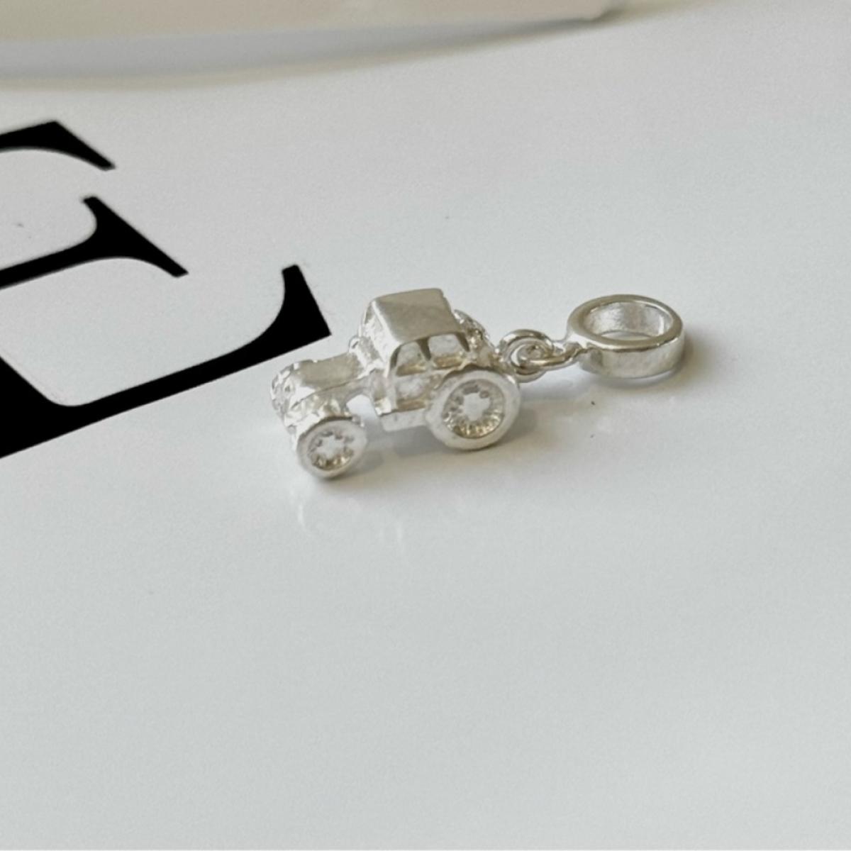 Berloque em Prata 925 legítima, com design detalhado em formato de trator, representando força, trabalho no campo e conexão com a vida rural. Uma joia criativa e cheia de significado, perfeita para amantes do agronegócio, fazenda ou para quem deseja personalizar a pulseira com um símbolo do universo agrícola.