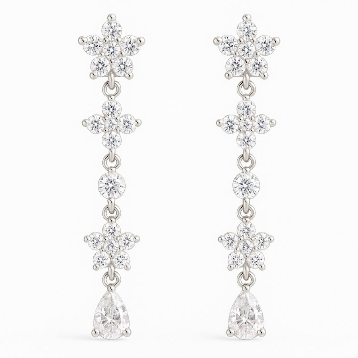 Brinco Correntinha de Flor Cravejado em Prata 925