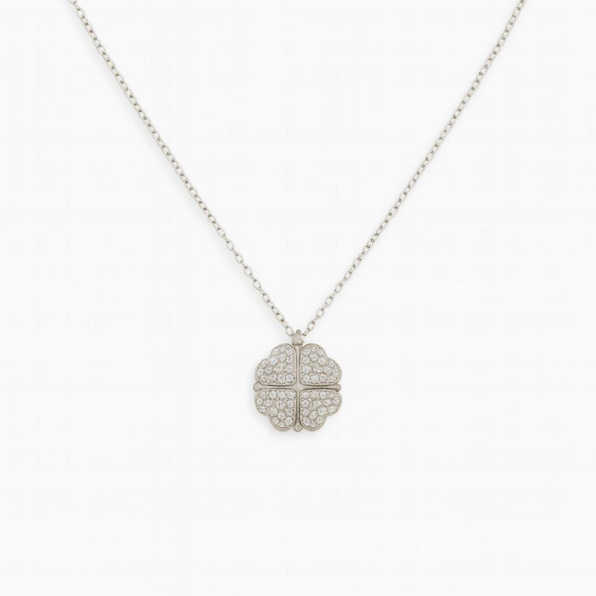 Colar em Prata 925 legítima, com corrente delicada e pingente em formato de trevo de quatro folhas, formado por corações. Cada coração é cravejado com zircônias cristal, criando um brilho intenso e sofisticado que transforma a peça em uma joia cheia de charme e significado. O trevo é símbolo de sorte, fé, amor e esperança, tornando este colar perfeito para uso diário ou para presentear alguém especial.