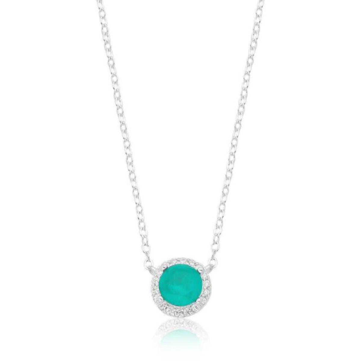 Colar em Prata 925 legítima, com corrente delicada e pingente em formato redondo, trazendo uma zircônia verde central em corte clássico, rodeada por micro zircônias cristal cravejadas que intensificam o brilho e a sofisticação da peça. Um design elegante e refinado, perfeito para compor looks modernos e destacar-se em qualquer ocasião.