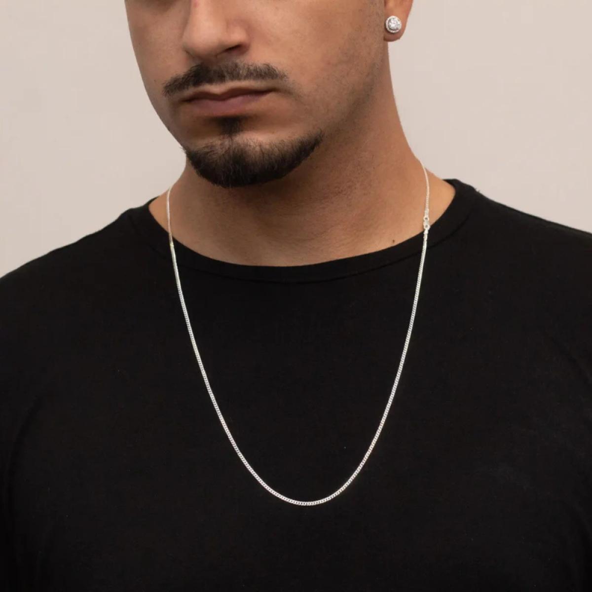 Corrente em Prata 925 legítima, modelo escamado, com 60cm de comprimento e 2mm de espessura. Seu design é composto por elos trabalhados em formato de escamas, que refletem a luz de maneira única, proporcionando brilho elegante e diferenciado. Uma peça versátil, ideal para uso diário, podendo ser usada sozinha ou com pingentes, atendendo tanto ao público masculino quanto feminino.
