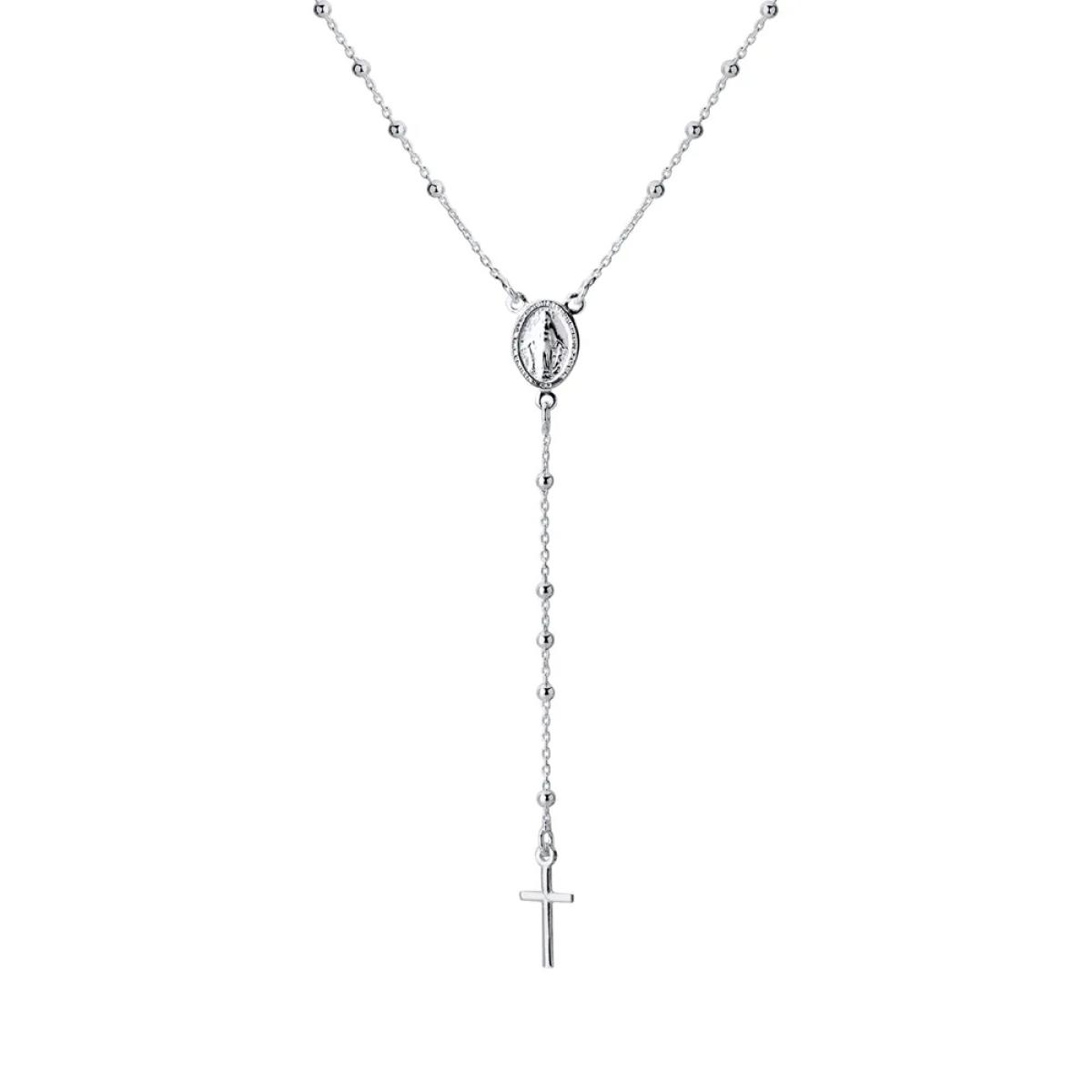 Corrente estilo terço rosário, confeccionada em Prata 925 legítima, com contas delicadas ao longo da corrente, crucifixo na ponta e medalha central, símbolo de fé e devoção. O design tradicional transmite espiritualidade e proteção, sendo ideal para uso diário, como acessório de fé ou para presentear alguém especial com significado religioso profundo.