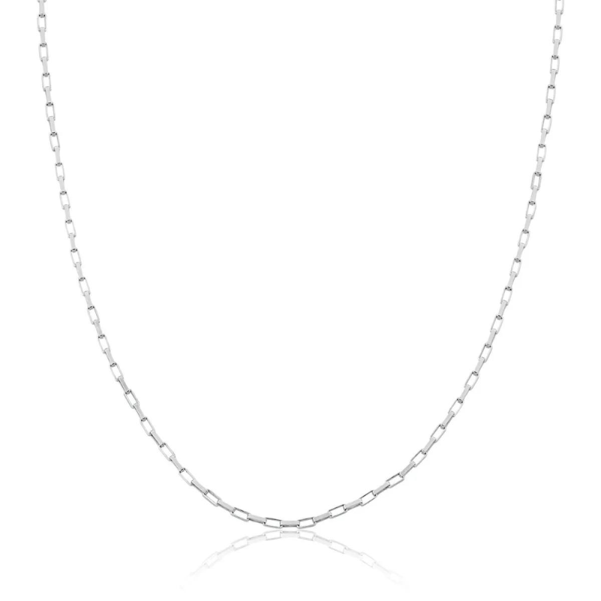 Corrente em Prata 925 legítima, modelo clássico tijolinho italiano, conhecido por sua estrutura firme, composta por elos retos e bem alinhados que lembram pequenos tijolos. Esse design proporciona elegância, resistência e brilho sofisticado, tornando a peça perfeita para uso diário ou ocasiões especiais. Pode ser usada sozinha como destaque ou combinada com pingentes para um visual moderno e versátil.