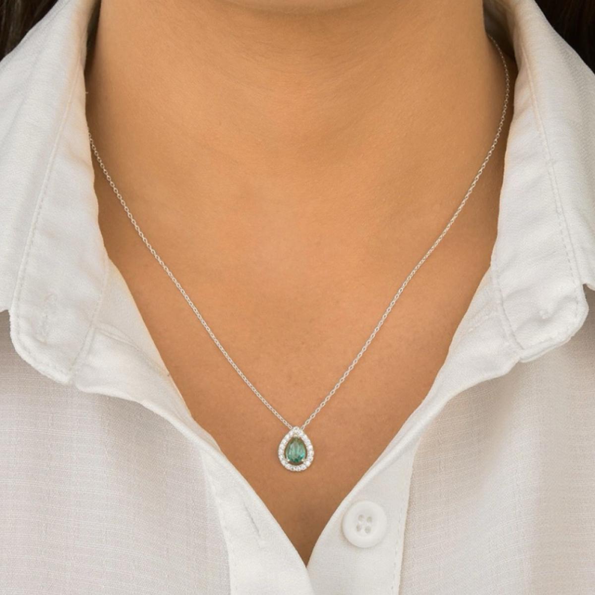 Gargantilha em Prata 925 legítima, com corrente delicada e pingente em formato de gota na cor turmalina, rodeada por micro zircônias cristal cravejadas que realçam ainda mais o brilho da pedra central. Um design sofisticado e atemporal, que une delicadeza e elegância, perfeito para iluminar qualquer produção, seja no dia a dia ou em ocasiões especiais.