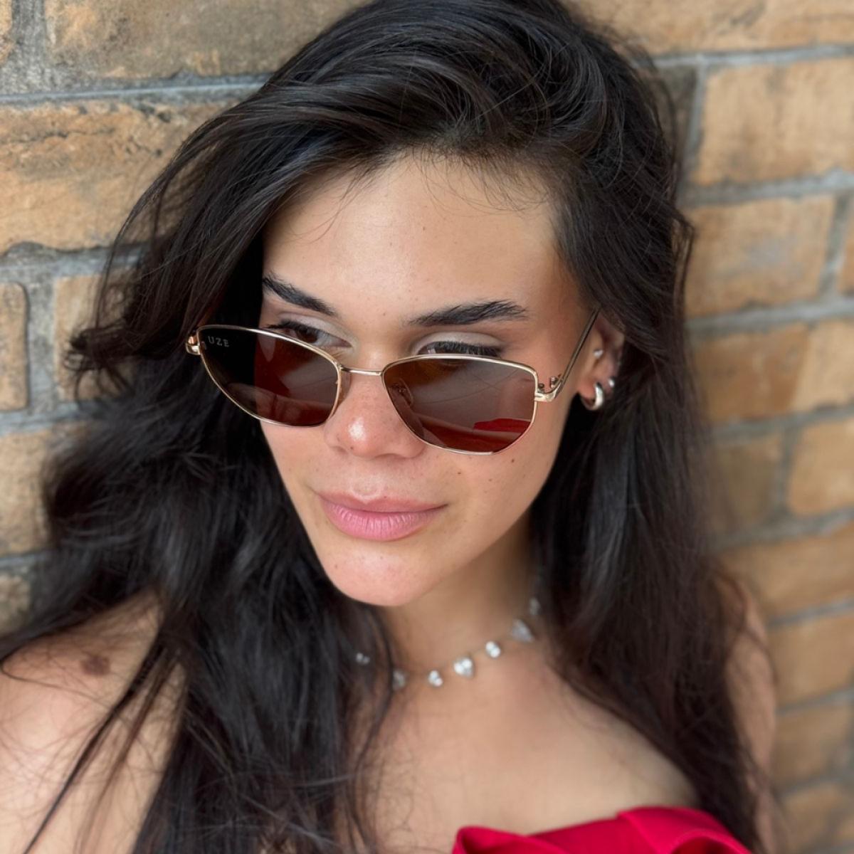 Estilo e elegância em um só acessório. O Óculos de Sol Golden Brown é confeccionado com armação em tom marrom dourado e lentes em degradê, oferecendo um visual sofisticado e moderno.