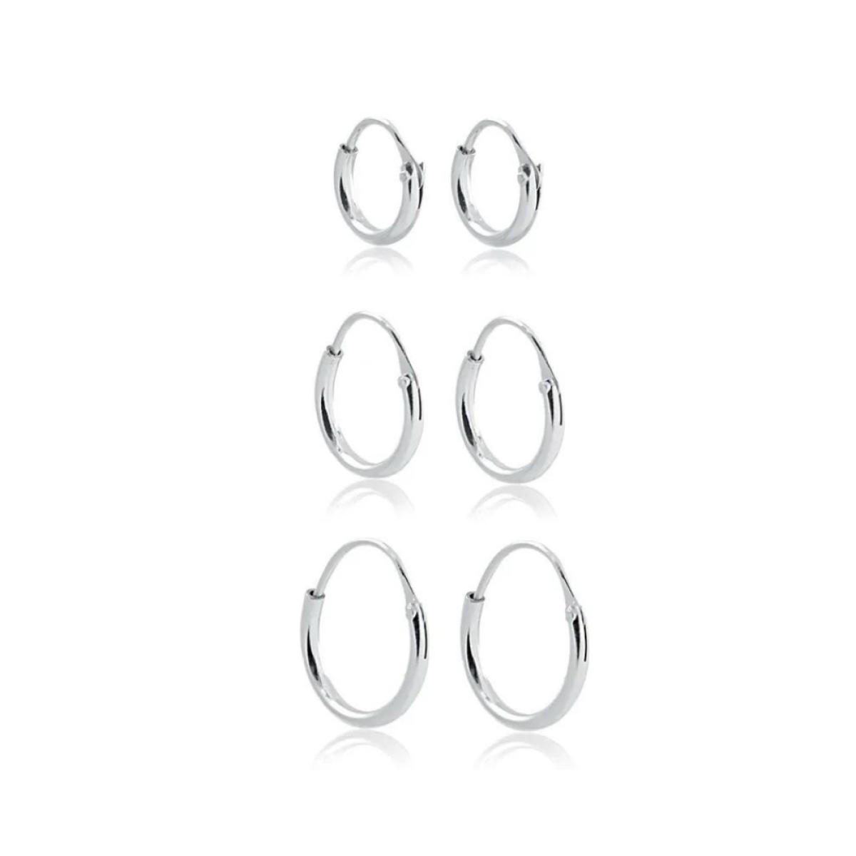 Clássico e versátil, este trio de argolas lisas em diferentes tamanhos é ideal para compor looks modernos e atemporais. Produzido em Prata 925 legítima com garantia vitalícia.