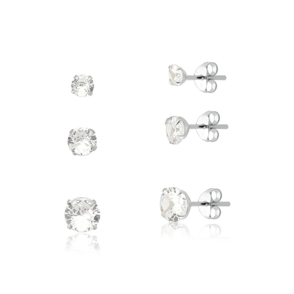 Trio de brincos em Prata 925 legítima, no estilo delicado mini ponto de luz redondo, com zircônias cristal que refletem brilho sutil e sofisticado. O conjunto é composto por três pares de brincos pequenos, ideais para quem possui múltiplos furos ou prefere acessórios discretos para o dia a dia. Uma joia minimalista, versátil e atemporal, que combina com qualquer ocasião.