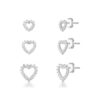 Trio de brincos em Prata 925 legítima, no estilo delicado ponto de luz em formato de coração, com zircônias na cor vermelho rosado, que combinam romantismo e sofisticação. O conjunto conta com três tamanhos diferentes, perfeito para quem possui múltiplos furos ou deseja variar o estilo ao longo do dia. Uma joia charmosa e atemporal, que une delicadeza e brilho em cada detalhe.